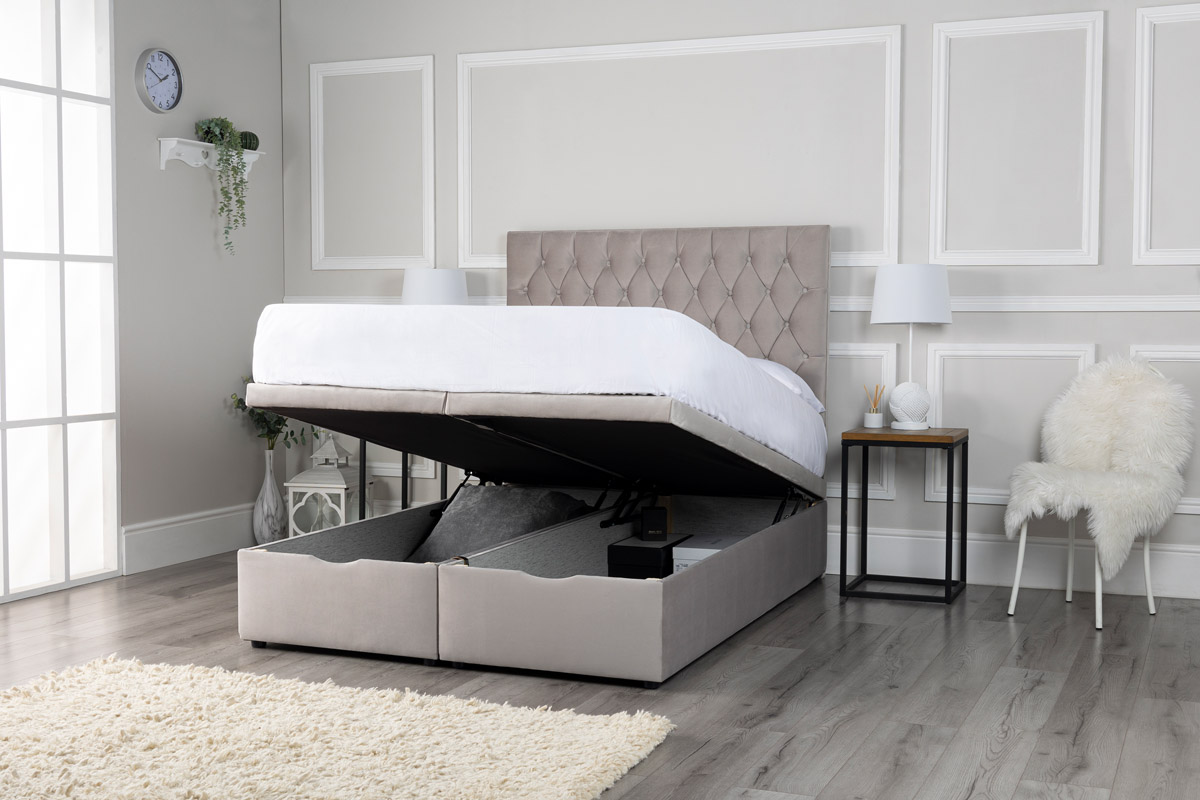 The Parker Ottoman Bed is a refined blend of timeless design and modern functionality. Its deep-buttoned, floor-standing headboard stands at 54” (50” for the 3ft size), offering a bold yet elegant focal point for any bedroom. Upholstered in a soft neutral fabric, the Parker’s tufted detailing adds texture and sophistication to both classic and contemporary interiors.
