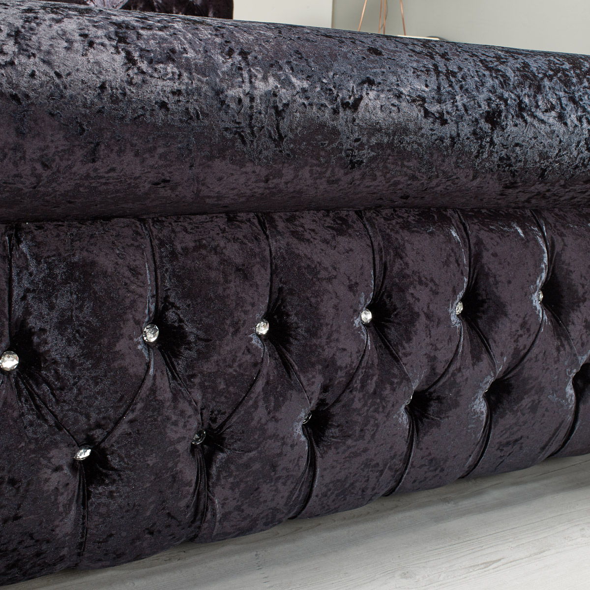 Upholstered in a rich black crushed velvet, the Oxford blends classic charm with everyday practicality. Whether styled with metallic accents, warm lighting, or layered textures, it anchors the room with confidence and sophistication.
